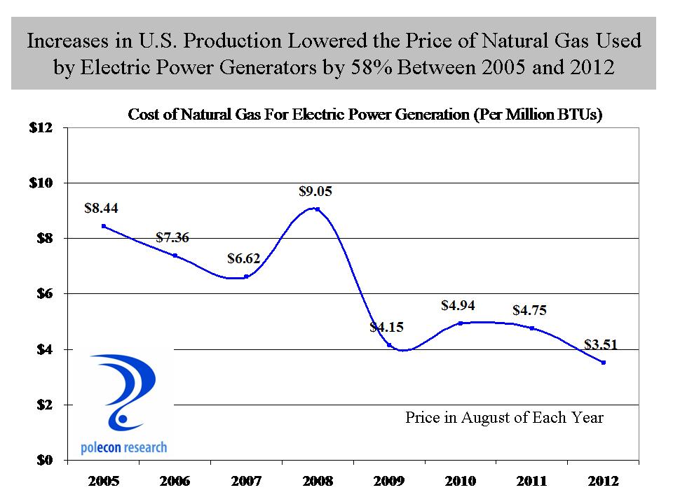 The rise in natural gas production in the U.S., along with the volume of proved reserves available in the future because of new technologies, could fundamentally change the energy landscape in the U.S. in a way that the significant and beneficial rise in U.S. oil production can not. Both trends are good news for the country and further efforts toward U.S. energy independence, but the lower prices and increased stability in supply of natural gas also have the potential to alter the energy fuel mix in this country. The use of natural gas has yet to make significant inroads in the transportation sector but it is hard to imagine how a fuel supply that (unlike gasoline) is, or could be, available directly at a majority of U.S. households at reasonable prices, will not eventually fuel a much higher percentage of vehicles in this country. In the electric power industry, the transition to natural gas is already occurring, in part because of the lower and more stable price environment for natural gas, but also because of the environmental advantages of natural gas.