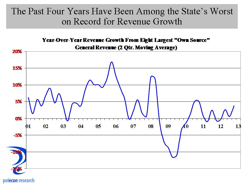 Some policy actions contributed to that (the decrease in the cigarette tax is an example – although that was only a small contributor to slower revenue growth) but the biggest reason is weak economic and job growth.